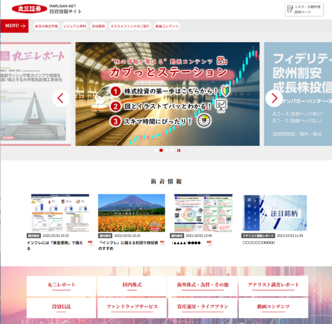 MARUSAN-NETログイン後、トップページの「バナー」または上段メニューの「投資情報」を押下し、投資情報一覧画面の「バナー」よりご利用ください。