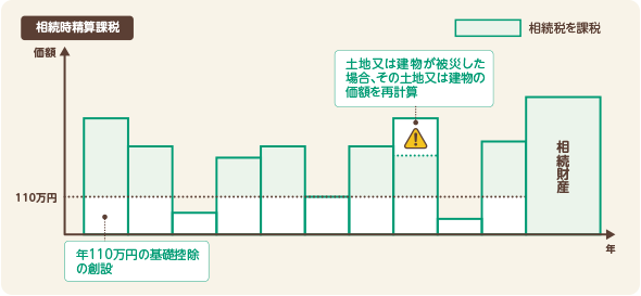 相続時精算課税制度で贈与により取得した土地又は建物が2024年1月1日以後に災害により一定の被害を受けた場合、相続時に加算する価額は災害による被災価額を控除した残額とすることができるようになりました。